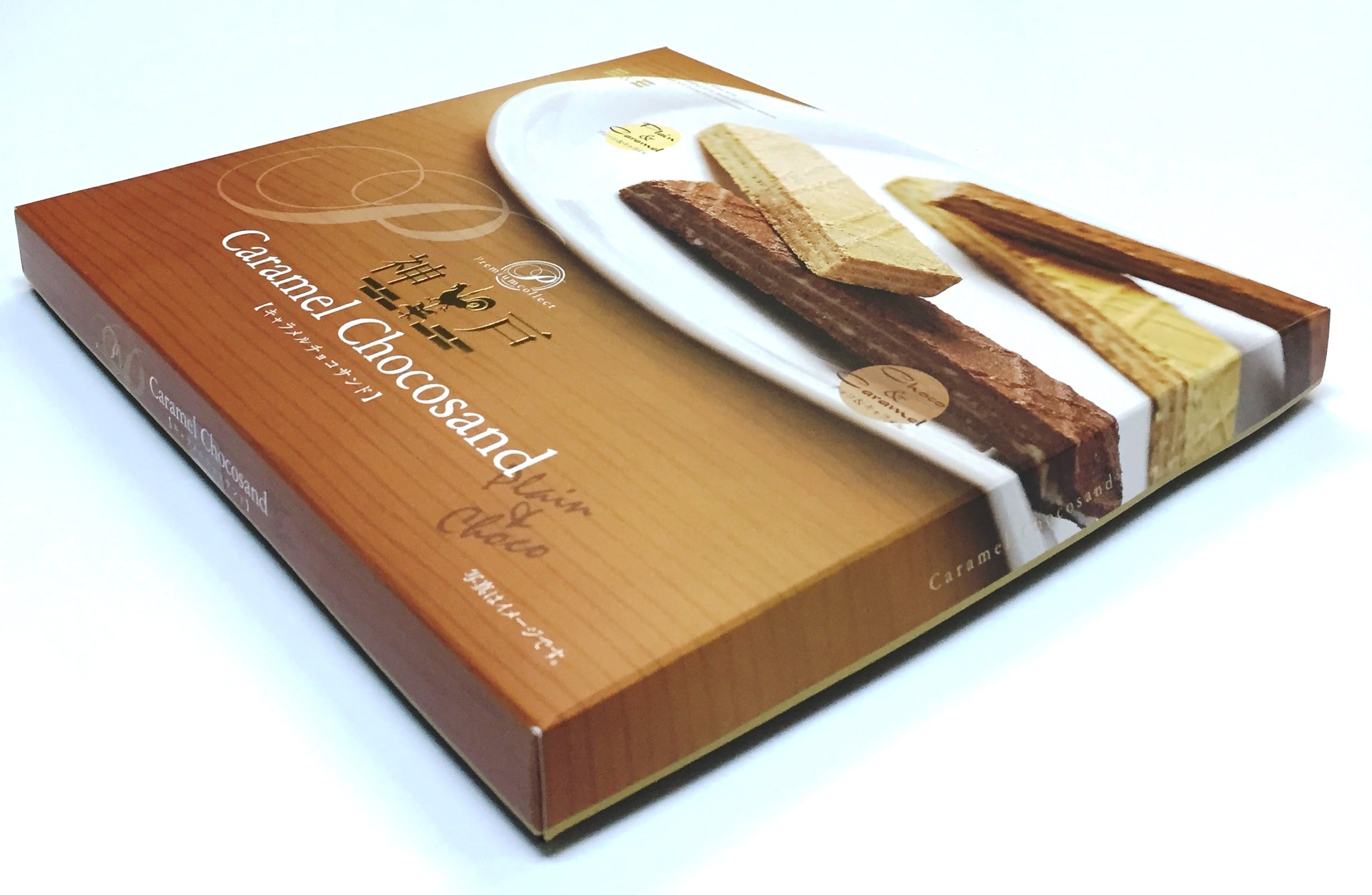 キャラメル風味のチョコレートをクッキーでサンドしました。プレーンとチョコの2種類の味をお楽しみいただけます。コーヒーや紅茶にぴったりのサクサククッキーです。